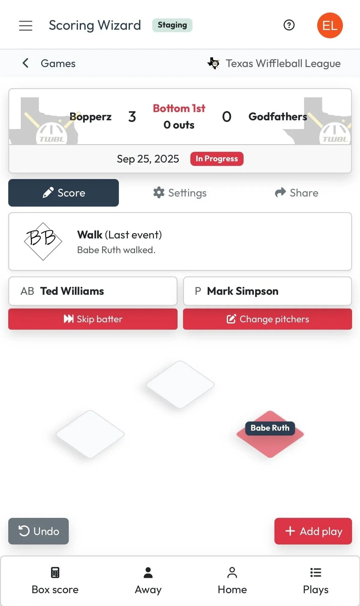 Score every play with no pencil needed, powered by software perfectly tailored to your specific ruleset.